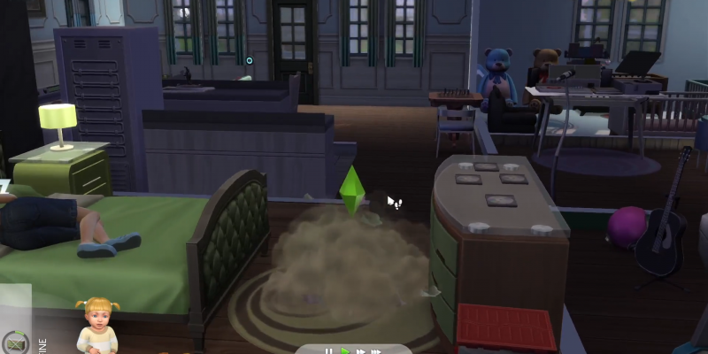 At first, the moment looks ordinary enough. The toddler is on the floor, appearing to dig through toys or explore something nearby. But as soon as the child begins to move, the expected dust animation doesn’t fade away as usual. Instead, it sticks to the toddler’s model and follows them wherever they go. The result is a tiny whirlwind that spins around the house,. This reminds players of the chaotic cartoon devil.
