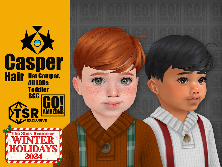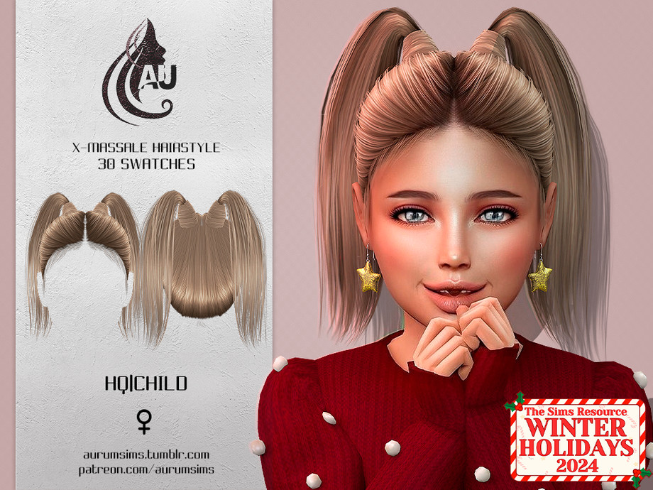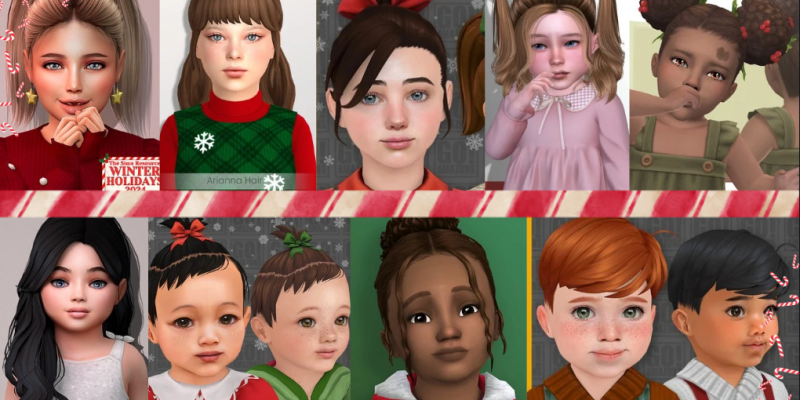 Next, we have hairstyles fit for every child in your Sim household. The following selection is a small sample, but still a good variety of CC available here to highlight CC that is perfect for the Holidays.