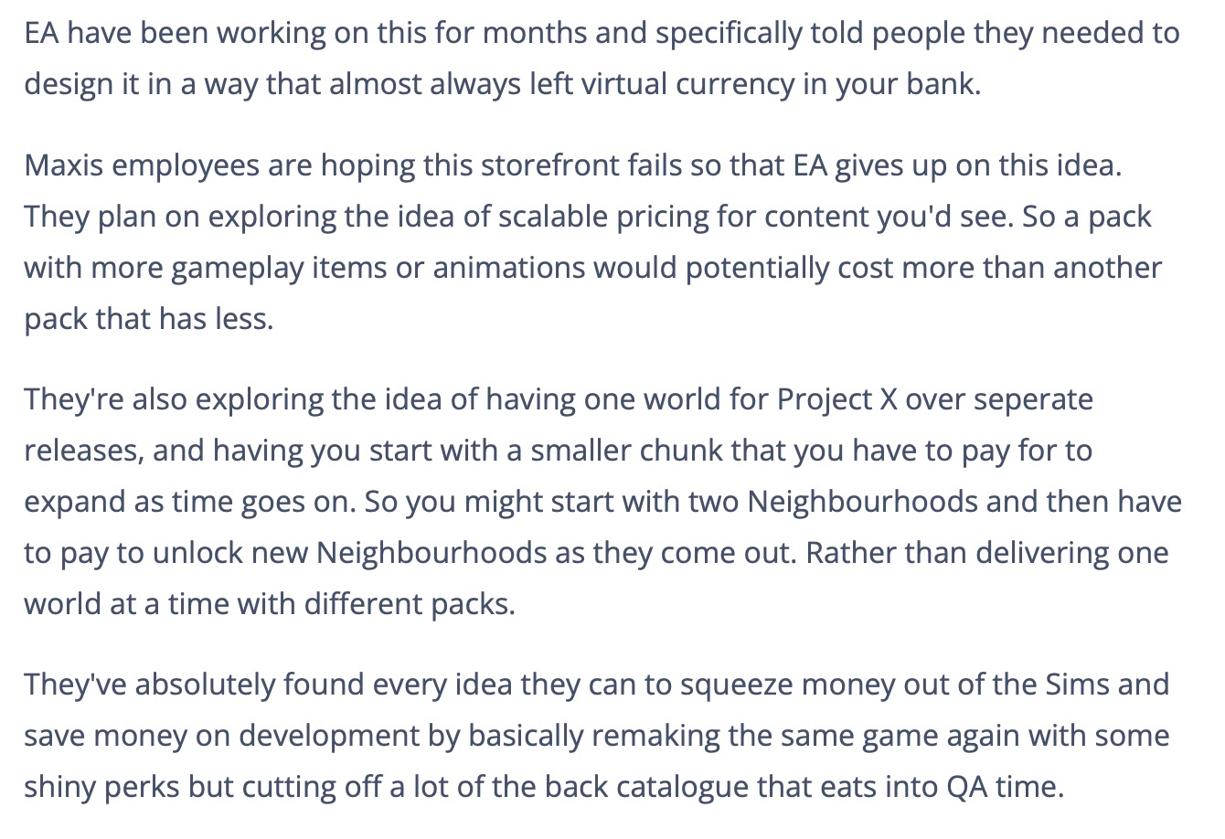 One commenter, chickpeasaladsammich, says; “The Sims has always been an expensive franchise but new aggressive monetization for TS4 in 2026 is actually ridiculous. I want the store to fail, but I don’t trust that it will. I think it will be even worse for upcoming games, so I’m not sure they’re going to get me to migrate to Project X whatever the heck that is.”