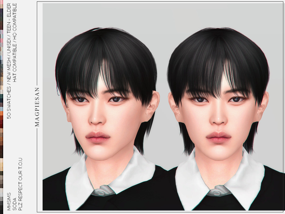 Soft, slightly anime-inspired short Sims 4 alpha hair for male Sims.