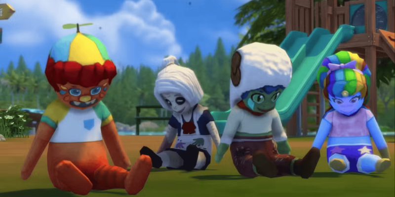 With the new release of this feature, I’m sure many players have questions and are curious about what these friends are. To understand their origins, let’s rewind to The Sims 3. Back in that iteration, they begin as rather unsettling dolls that are gifted to a baby or toddler Sim by a ‘distant relative’. How cryptic! If played with frequently, the doll would transform into a human-sized rag doll!